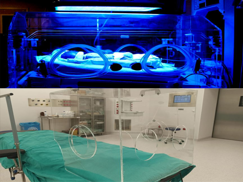 Pleksi malzemenin şeffaf, temizlenebilir, kırılmaya dirençli, hafif, şekil verilebilir olması sağlık ve medikal alanında da kullanımı sıkça görülür.